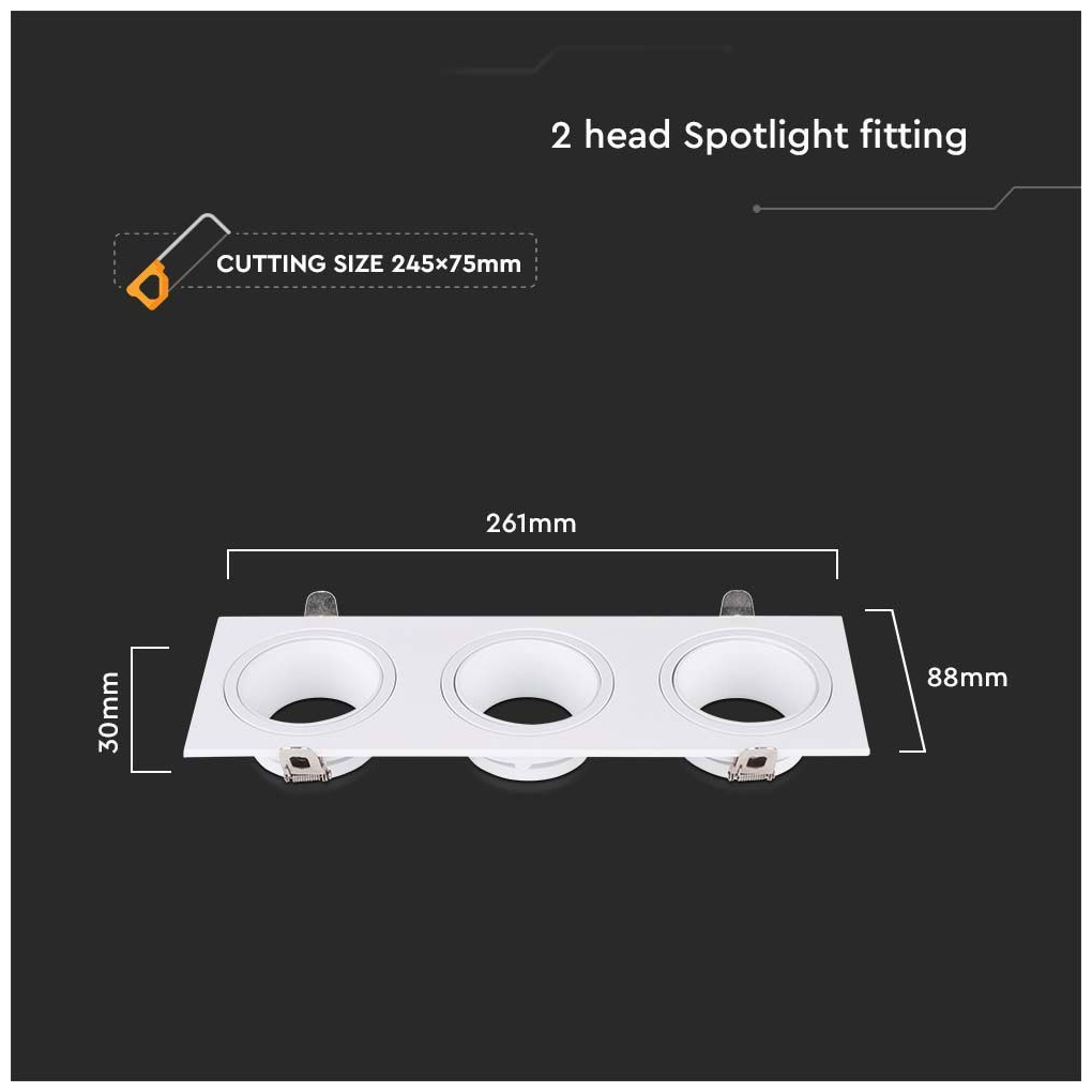 V-TAC Βάση Σποτ Χωνευτή Ορθογώνια Σταθερή για 3xGU10 IP20 Πλαστική 261x88x30mm Άσπρη 10299