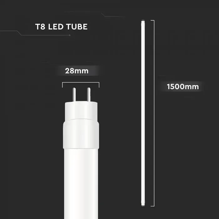 Ο VTAC LED T8 σωλήνας 150cm προσφέρει εξαιρετικά ψυχρό λευκό φως 6500K με φωτεινότητα 3000 lumen, ιδανικό για εργασιακούς χώρους, αποθήκες, χώρους στάθμευσης, γκαράζ και άλλες επαγγελματικές εφαρμογές. Με γωνία διάχυσης 160° και CRI>80, παρέχει καθαρή, ισχυρή και φυσική ορατότητα σε κάθε σημείο του χώρου.