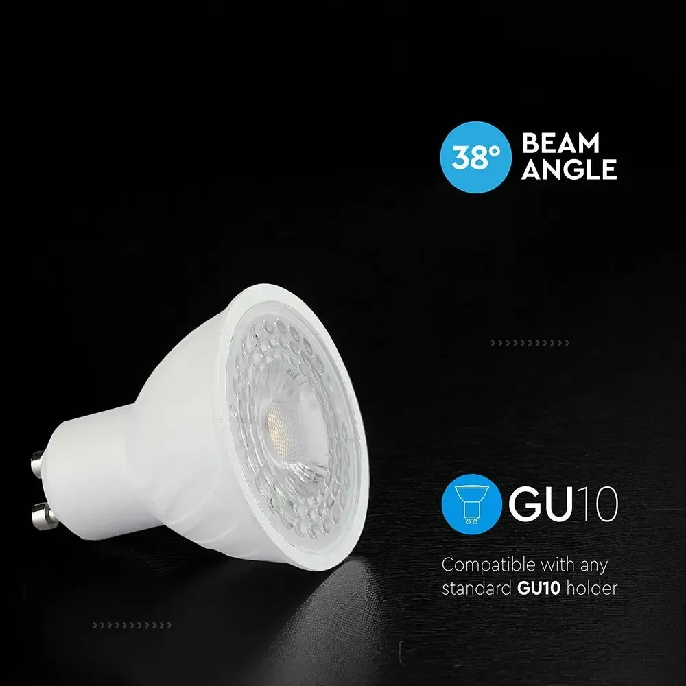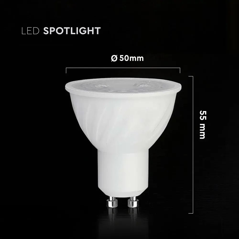 Ο VTAC PRO Προβολέας LED GU10 4.5W με Chip CREE αποδίδει 345 lumen και γωνία φωτισμού 38°, προσφέροντας εστιασμένο και καθαρό φως 4000K (φυσικό λευκό). Είναι ιδανικός για χώρους που απαιτούν ακρίβεια και ευκρίνεια, όπως καταστήματα, γραφεία ή εκθεσιακοί χώροι.